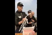 [ Znalezione na YT, akcja od 0:30 ] Nie ma to ja utrzeć zderzak policyjnego radiowozu.