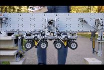 Model w pełni funkcjonalny chińskiej maszyny SLJ 900/32 Wowjoint wykorzystywanej do kładzenie gotowych elementów mostu na filarach, zbudowana z klocków Lego Technic.