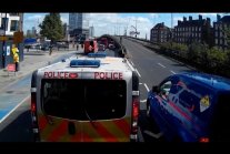 Cwaniaczek myśli, że wciśnie się na pas na samym końcu korka ale trafia na mocnych zawodników. A filmujący ma z tego niezłą radochę.