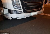 Na kręconym nocą wideo widać rozrzucone na drodze kawałki betonu i mężczyznę z flarą. Idzie on wprost przed kabinę kierowcy. Kierowca przyśpieszył i rozbił przeszkodę. Słychać, jak betonowe fragmenty ocierają się o podwozie i przód ciągnika.