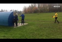 Pan Piłkarz dyryguje swoim ulubionym klubem. Stojąc o kulach i moknąc. Szacun.