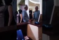 Janusz Nawalony próbuje przejść przez lustro, ale jego odbicie blokuje mu drogę.