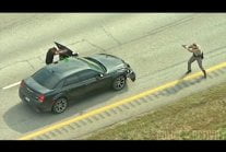 Policjant zostaje postrzelony w ramię przez uciekającego kierowcę. Śmigłowiec policyjny ląduje na autostradzie i transportuje policjanta do szpitala. Policjant przeżył, sprawca zmarł. >"shots fired shots fired troop down troop down"
