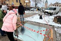 Słynne lustro Niebo Kielc czyli przekręt na 90000 zł, znajdujące się przed kielecką katedrą, zostało zasypane śniegiem i stwarzało zagrożenie dla przechodniów więc prowizorycznie zostało ogrodzone taśmą. Wkrótce zamiast taśmy ma pojawić się ogrodzenie stałe, ciekawe ile będzie kosztować.