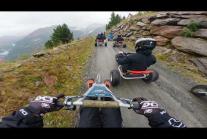 Napęd grawitacyjny, długość trasy 7,3 km, miejsce Sölden, Austria. Dodatkowe utrudnienia: krowy.